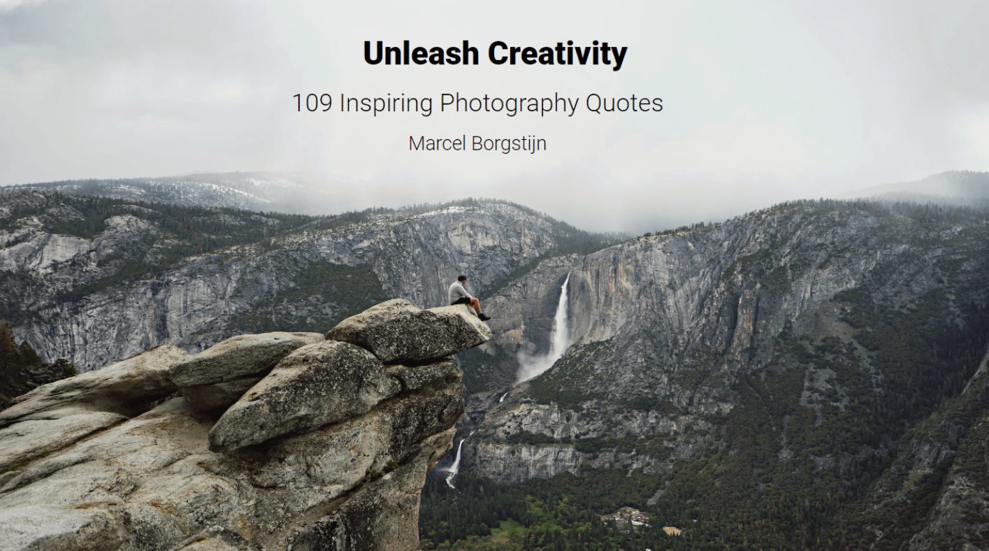 I’ve made an e-book, packed with inspirational quotes on photography a while back. It can be found at Gumroad. For a limited time it is free to download. Well, free or ‘pay what you like’ if you want to support me in creating this newsletter, e-books like this and - from October 2nd - a quarterly magazine.