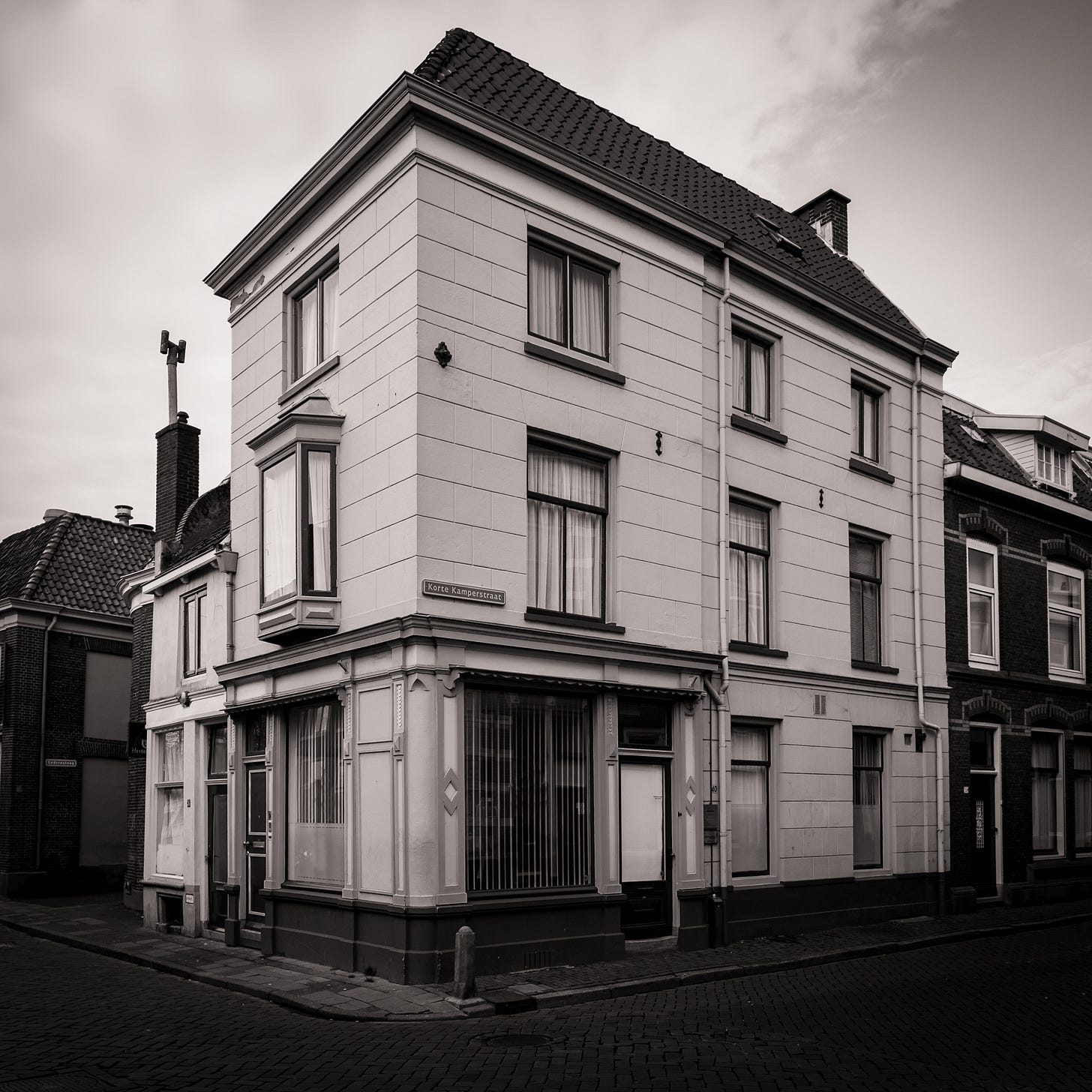 ”In an image processor I had removed cables from street lighting, a moped, advertising behind the windows, etc. But I hadn’t erased the street name sign, and that turned out to be an irresistible bait for the photo detectives to go Streetviewing. In no time at all, they knew exactly where to find the building. Wherever you are in the world: try for yourself, the sign says ‘Korte Kamperstraat’. Now the question is: how important is that? Why would anyone want to know that at all? Shouldn’t a photograph be able to stand on its own without additional knowledge – apart from journalistic or documentary photography? I was surprised by the unintended characteristics that my photograph turned out to have, which apparently distracted attention from the content of the image. The findings were correct, but in my opinion irrelevant and actually quite distracting. I vowed to give my next corner building completely fictitious street names...Shortly before that, researcher Grijzenhout found the exact address of the 17th century Johannes Vermeer painting ‘Straatje’ (the little street, in the city of Delft – see Wikipedia). The most important characteristic of the painting is that it is a Vermeer. And people like the painting. Newspaper columnist Schouten expressed his surprise about the search for the street name and the specific building. What exactly do you need to know to discover the truth, he wondered: the discovery of the correct address did not really affect him, nor did he feel the urge to take the next train to Delft.