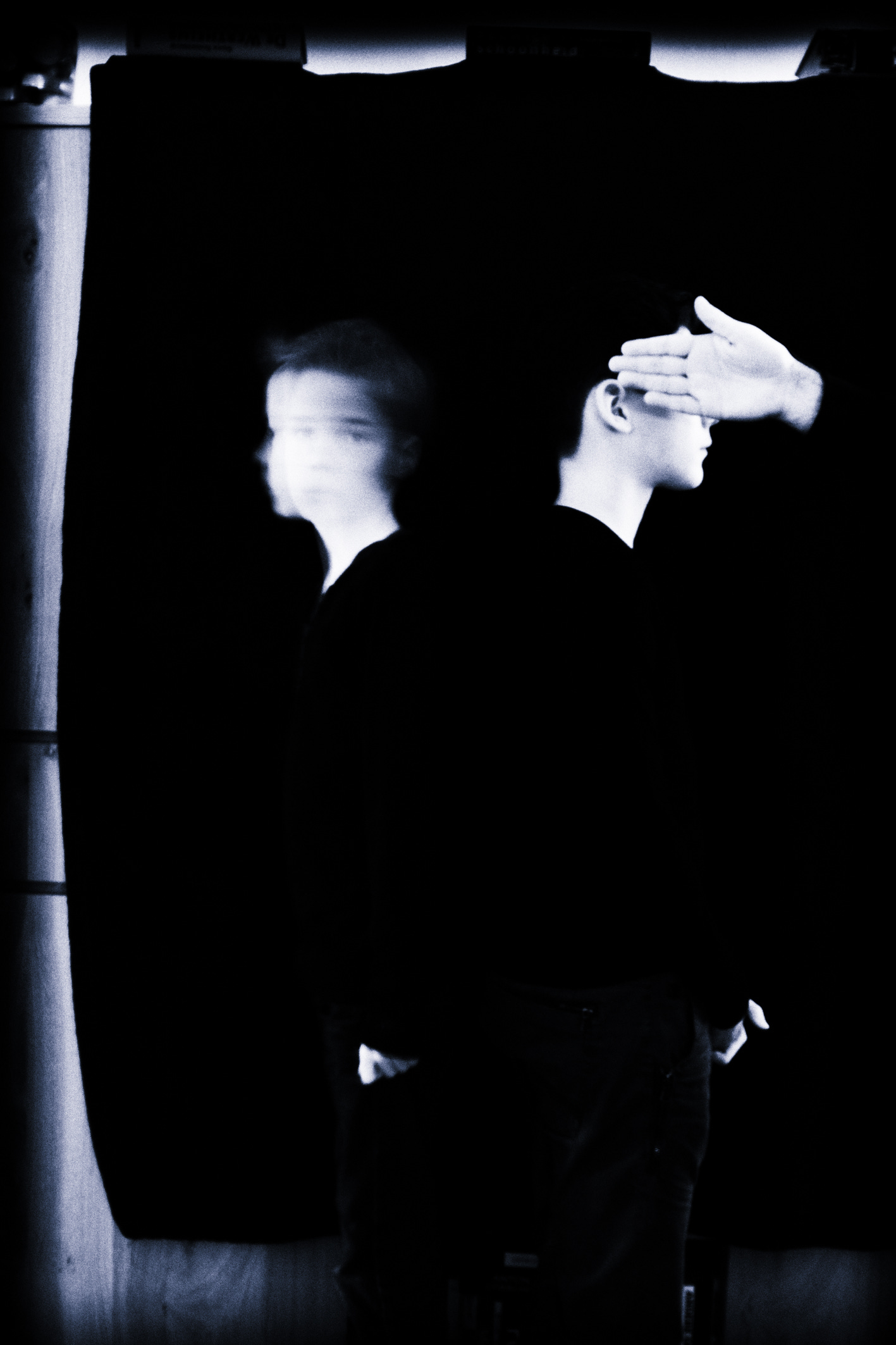 PhotoTalk #20: I submitted a photograph myself. Two boys, motion blur, a hand (my hand) covering a face. I wrote an artist statement alongside it: this is a protest against the endless sharing of our lives and those of our children on social media. The visible edges of the black cloth are deliberate, to show there’s more than the perfect picture parents post online.